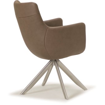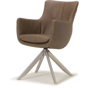 Kuipvormige eetkamerfauteuil, leverbaar met verschillende voeten / onderstellen. Het onderstel kan zowel vast als draaibaar worden uitgevoerd. Dit model is mogelijk met zgn. combi-stoffering.