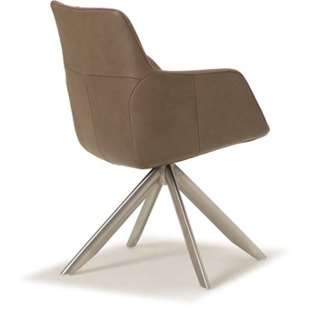Kuipvormige eetkamerfauteuil, leverbaar met verschillende voeten / onderstellen. Het onderstel kan zowel vast als draaibaar worden uitgevoerd. Dit model is mogelijk met zgn. combi-stoffering. Er is een lage- en hoge variant verkrijgbaar.