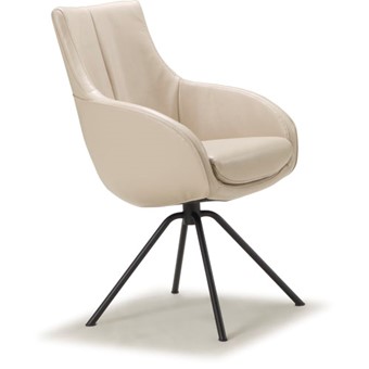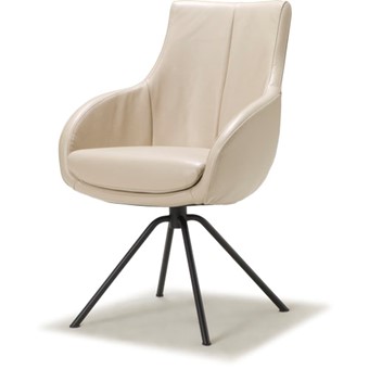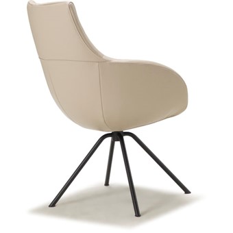 Kuipvormige eetkamerfauteuil, leverbaar met verschillende voeten / onderstellen. Het onderstel kan zowel vast als draaibaar worden uitgevoerd. Dit model is mogelijk met zgn. combi-stoffering.