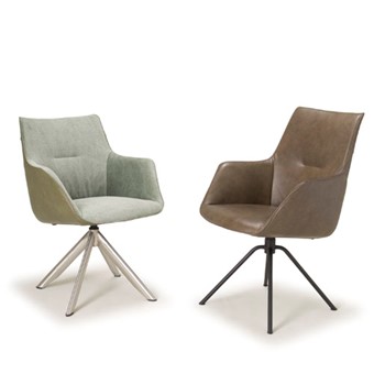 Kuipvormige eetkamerfauteuil, leverbaar met verschillende voeten / onderstellen. Het onderstel kan zowel vast als draaibaar worden uitgevoerd. Dit model is mogelijk met zgn. combi-stoffering. Er is een lage- en hoge variant verkrijgbaar.